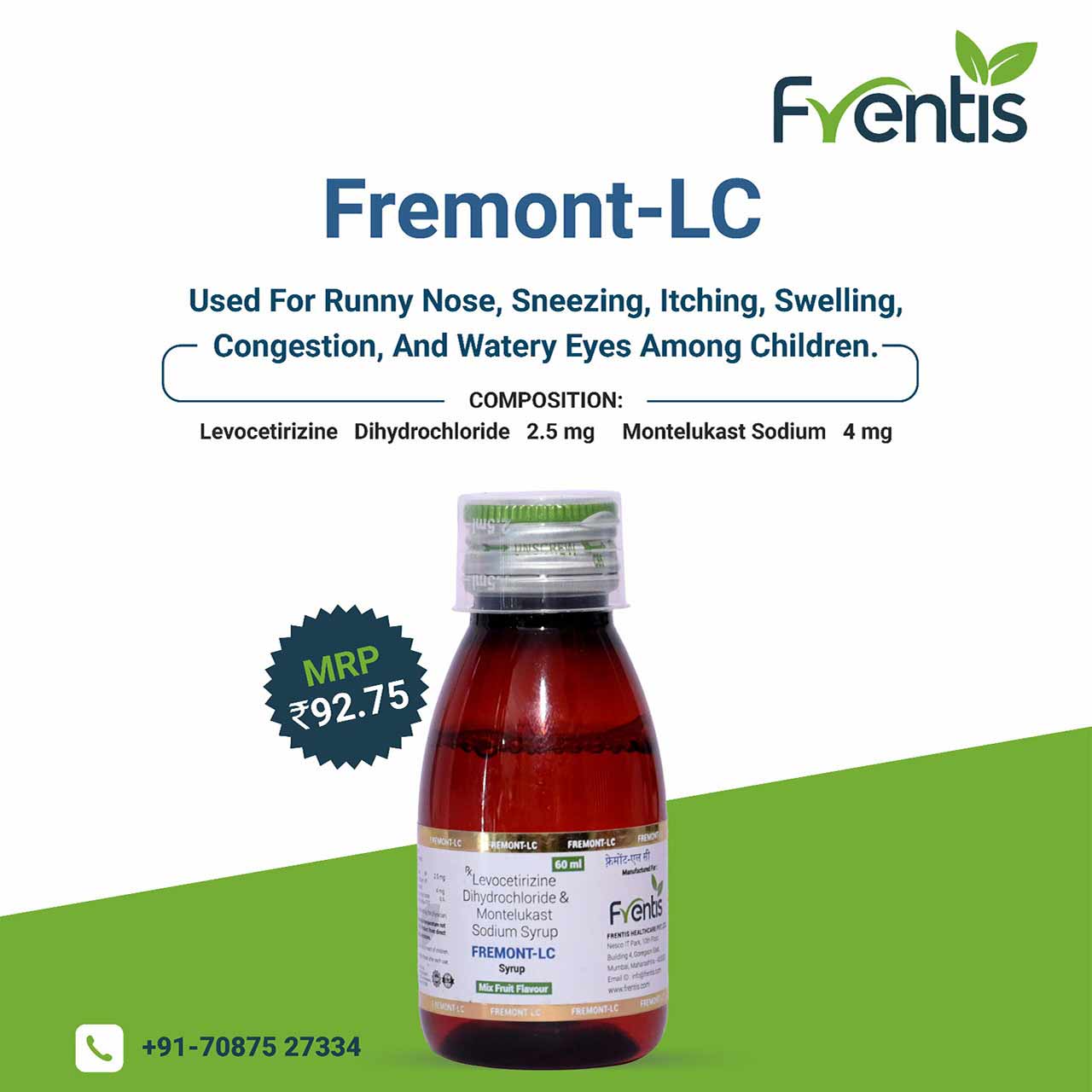 Fremont-LC Syrup is used to treat symptoms of allergy such as runny nose, sneezing, itching, swelling, congestion, and watery eyes among