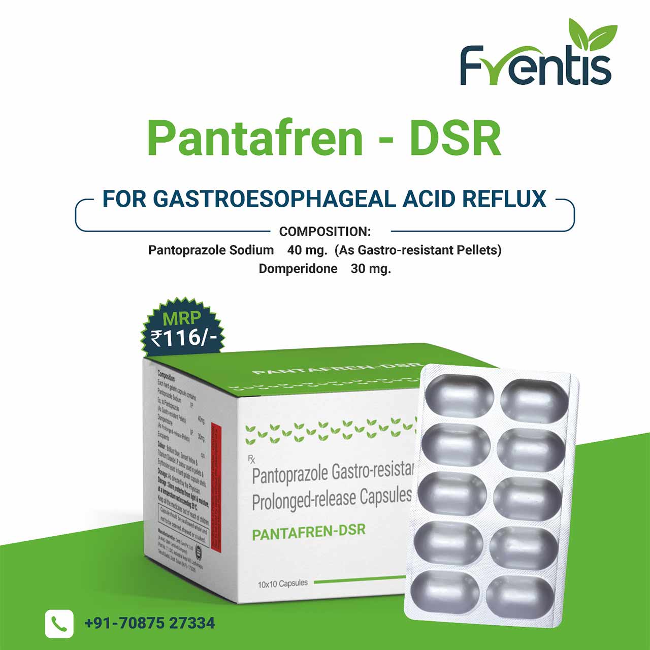 Pantoprazole Sodium & Domperidone Capsules: Pantoprazole + domperidone is indicated for gastro-esophageal reflux disease (acid reflux), erosive esophagitis (inflammation of the esophagus caused by acid reflux), and gastric and duodenal ulcers. It is also used for the symptomatic relief of nausea and vomiting, discomfort in the upper abdomen, an uneasy feeling, and regurgitation of gastric contents.