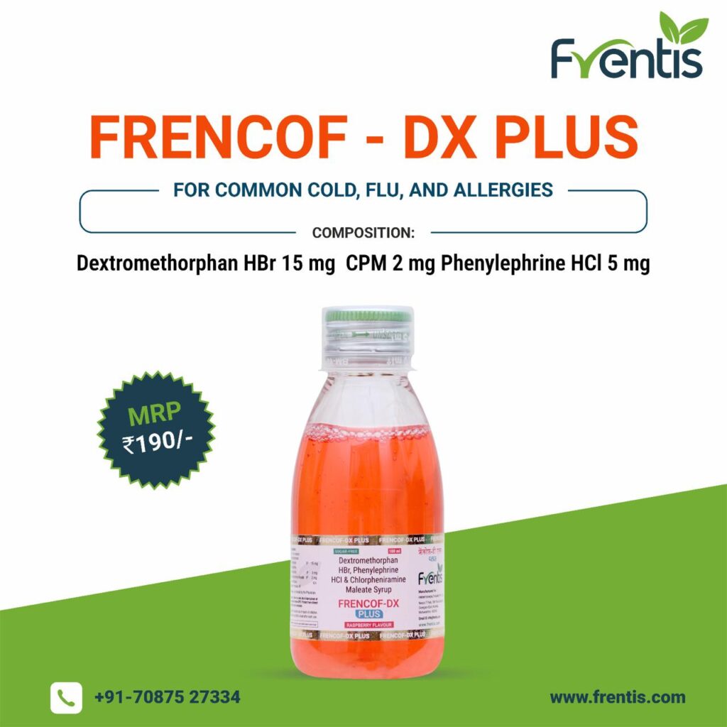 Frencof-DX Dry cough syrup is used in the treatment of common cold and dry cough. Dextromethorphan Hydrobromide, Chlorpheniramine Maleate &